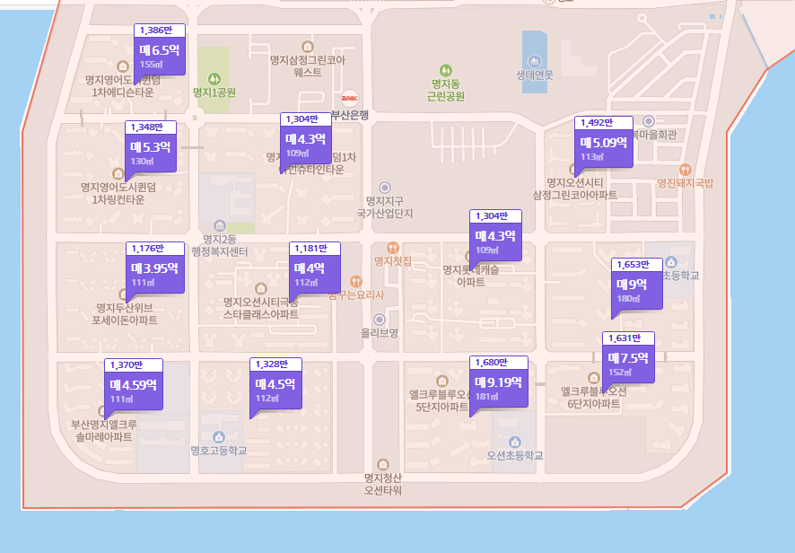 부산 지역에서 핫한 명지 지역을 아파트 시세를 알아보도록 할 건데요.