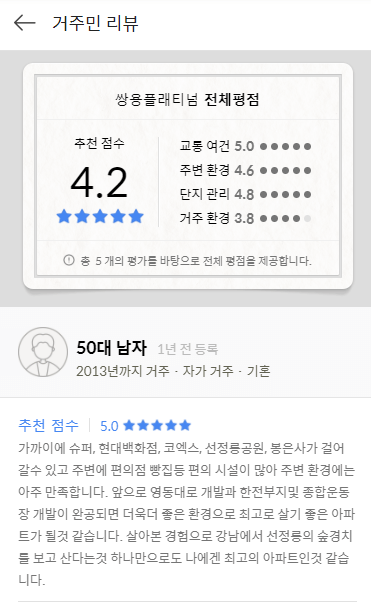 그리고 다음 부동산에서는 많은 기능들을지원을 하고 있습니다. 다음과 같이 살고잇는 사람의 실재 리뷰를 확인을 할수도 있는데요.