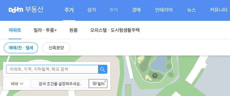 다음 부동산 지도 홈페이지를 방문을 하시면 검색을 하시거나 아니면 아래의 홈페이지 링크를 이용을 하셔서 방문을 하셔도 됩니다. 다음부동산 홈페이지를 방문을 하시면 아래와 같이 홈페이지를 확인을 할수 있습니다.