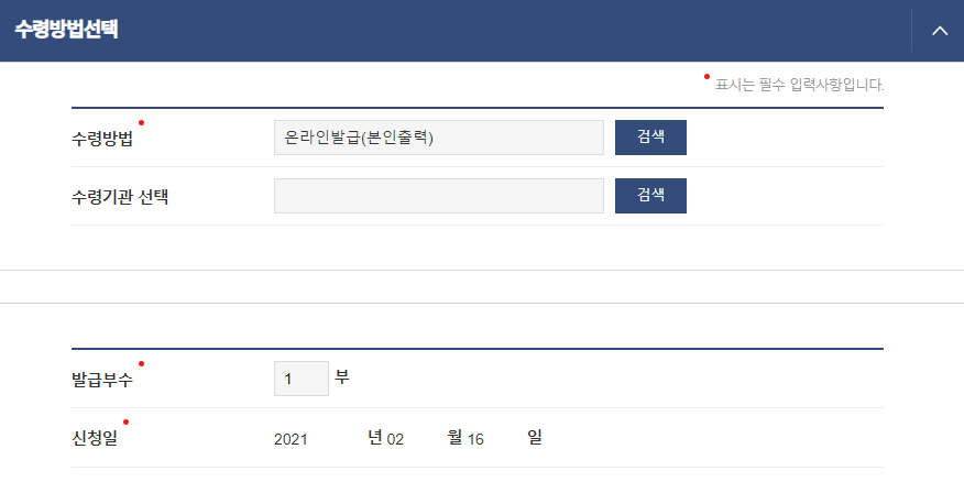 ※ 온라인발급 기능을 이용하면 집에서도 프린터로 발급받을 수 있습니다.