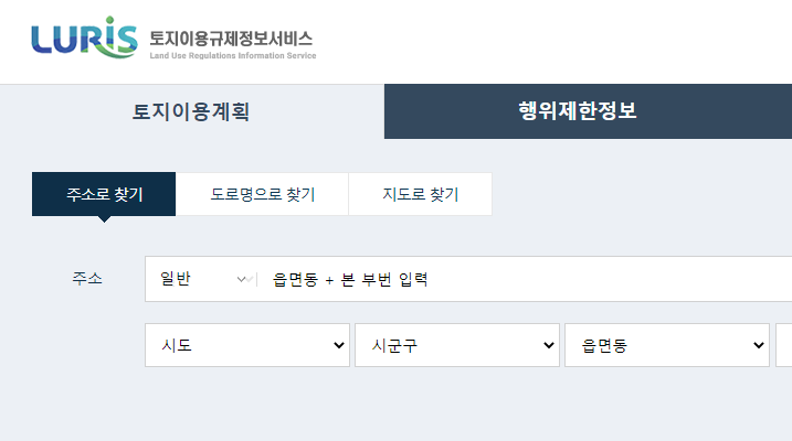 1. 토지이용규제정보서비스 홈페이지