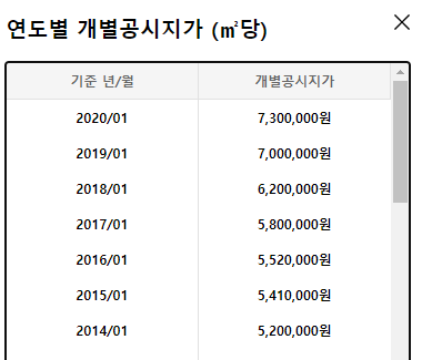 그리고 연도별 공시지가를 확인을 하여 시세 파악도 할수 있으니 참고하여 보시면 좋으실듯 합니다.