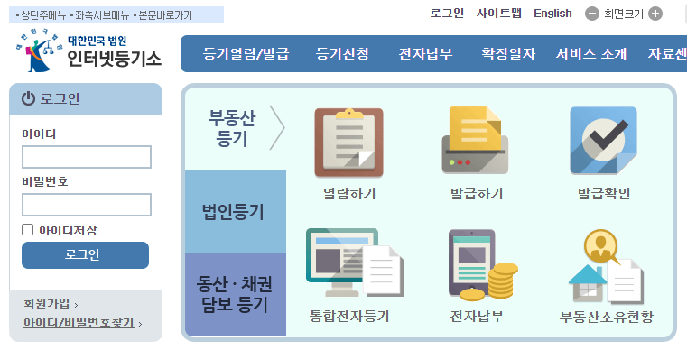 집을 구매를 하기전에 반드시 필요한 과정의 문서확인 홈페이지 입니다. 등기부등본 사항을 확인을 해볼수가 있는 사이트입니다. 아래의 글을 확인을 해보시기 바랍니다.
