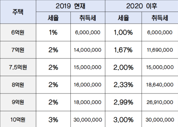 어떤 제품을 구매를 하게 되면 세금이라는 금액을 나라에 지불을 하게 됩니다. 아파트나 집을 구매를 하게 되면 금액이 만만치 않아 세율을 1%만잡아도 6억원의 주택의 경우 아래와 같이 취득세만 6백만원을 내는 경험을 하게 됩니다. 아래의 도표를 확인을 하시면 가격대별로 취득세를 간단하게 확인을 할수 있습니다.