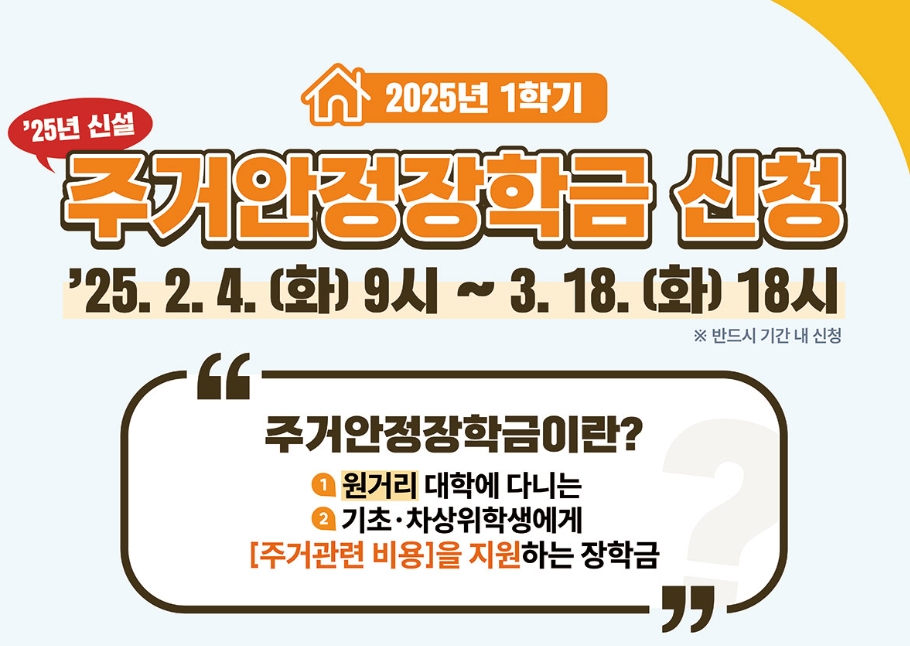 이런 걱정을 덜어줄 반가운 소식이 있습니다. 바로 2025학년도 주거안정장학금이 새롭게 시행된다는 것인데요.