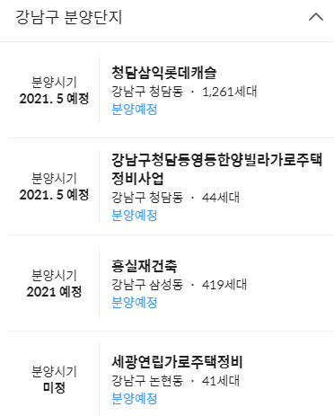 그리고 현재 조회한 지역의 분양단지에 대한 조회도 가능합니다. 다음과 같이 다음부동산 사이트를 참고하시면 좋으실듯 합니다.